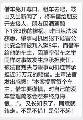 这是真的吗?车辆真是一律不能外借吗?借车给他人一旦发生交通事故车主就要和驾车人承担连带责任吗?