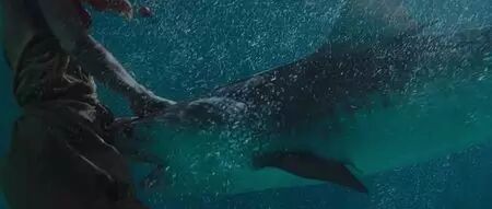 鲨鱼正在迅速靠近,可对女友丝毫不感兴趣地径直向男友游去!男友被鲨鱼凶猛地撕咬着,他发疯似地冲女友喊道:“我爱你!!!”