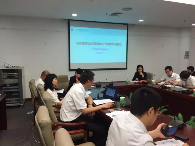 闵令波主任于会上就出境游保证金银行托管服务的相关背景、法律关系及依据、业务操作方案、三方协议参考条款等事宜作出详细的阐述分析并提供了专业的法律建议。