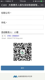 4、输入您的姓名、身份证号、导游证号、任职公司、手机共五项内容,点击提交;