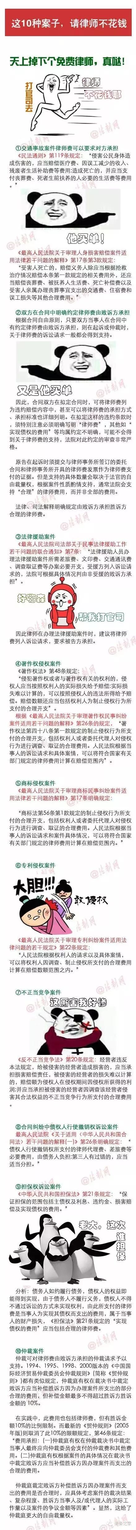 一提起打官司,人们最先想到的就是律师费。有的案件,律师费就是个不小的数目!但是,你一定不知道,下面这些案件是不用掏律师费的!快收好备用~~【来源:法务之家】