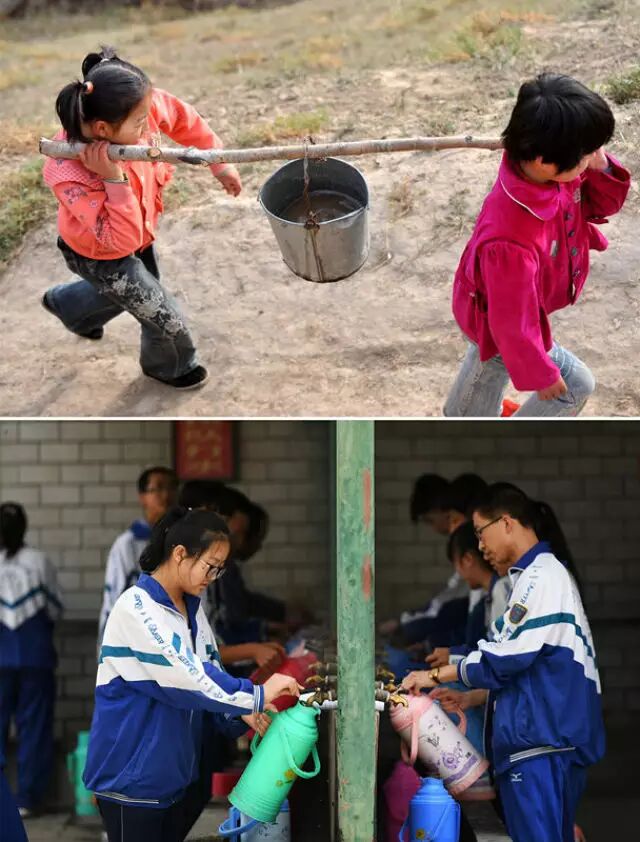 拼版照片:上图:当年正在上小学的王琼(左)抬着水走在崎岖的山路上(2009年10月24日,新华社记者聂建江摄);下图:即将参加高考的王琼放学后在学校开水房打开水(2017年5月25日摄,新华社记者陈斌摄)。2009年,新华社记者在甘肃省会宁县采访调研时,王琼只是个10岁的小学生。8年过去了,王琼凭着自己的努力,如今已是甘肃省级示范性高中——会宁一中的一名高三学生,即将参加高考。不少贫困地区的孩子,就是通过高考改变了自己的人生轨迹。新华社发