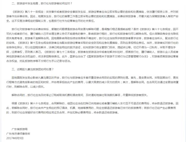 广东伟然律师事务所也在第一时间及时拟定《关于九寨沟地震影响旅游合同履行问题的法律指引》(以下简称“指引”),用以指导顾问单位和游客合法处理合同履行,尽可能减少双方矛盾,共渡难关!